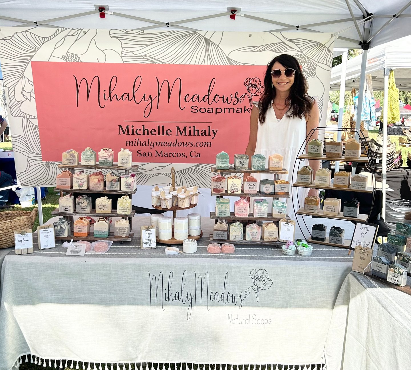 Mihaly Meadows was lovingly created by Michelle Mihaly. I am a special education teacher and needed a creative outlet during Covid while teaching virtually. This started as a hobby to create beautiful skin loving products, that soon turned into a small business that fills me with pride and joy. Indulge your skin with my cold processed soaps and body products, handcrafted with care to nourish and hydrate your skin. Experience the love and care I put into every batch. Made with high-quality ingredients, my products are designed to nourish your skin and delight your senses. From sweet and floral scents to earthy and refreshing aromas, my range of products offers something for everyone's preferences.